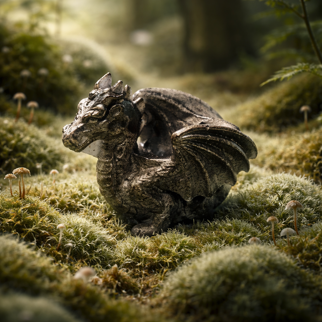 Dragon made of resin with an open back. It’ll hold small things and you could even plant a succulent in it